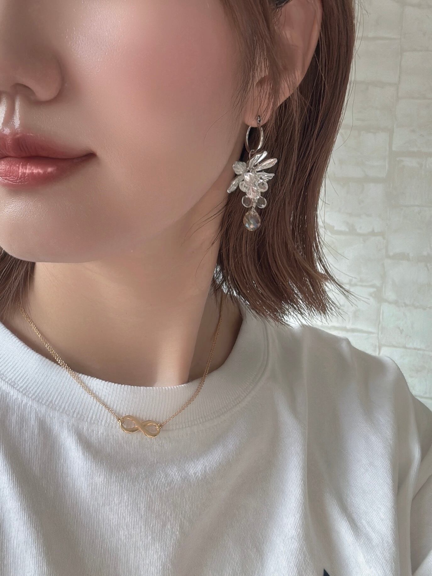 朝日を浴びてきらめく朝露のような、静かで心地よいひとときをイメージして仕上げたこちらの耳飾り。
