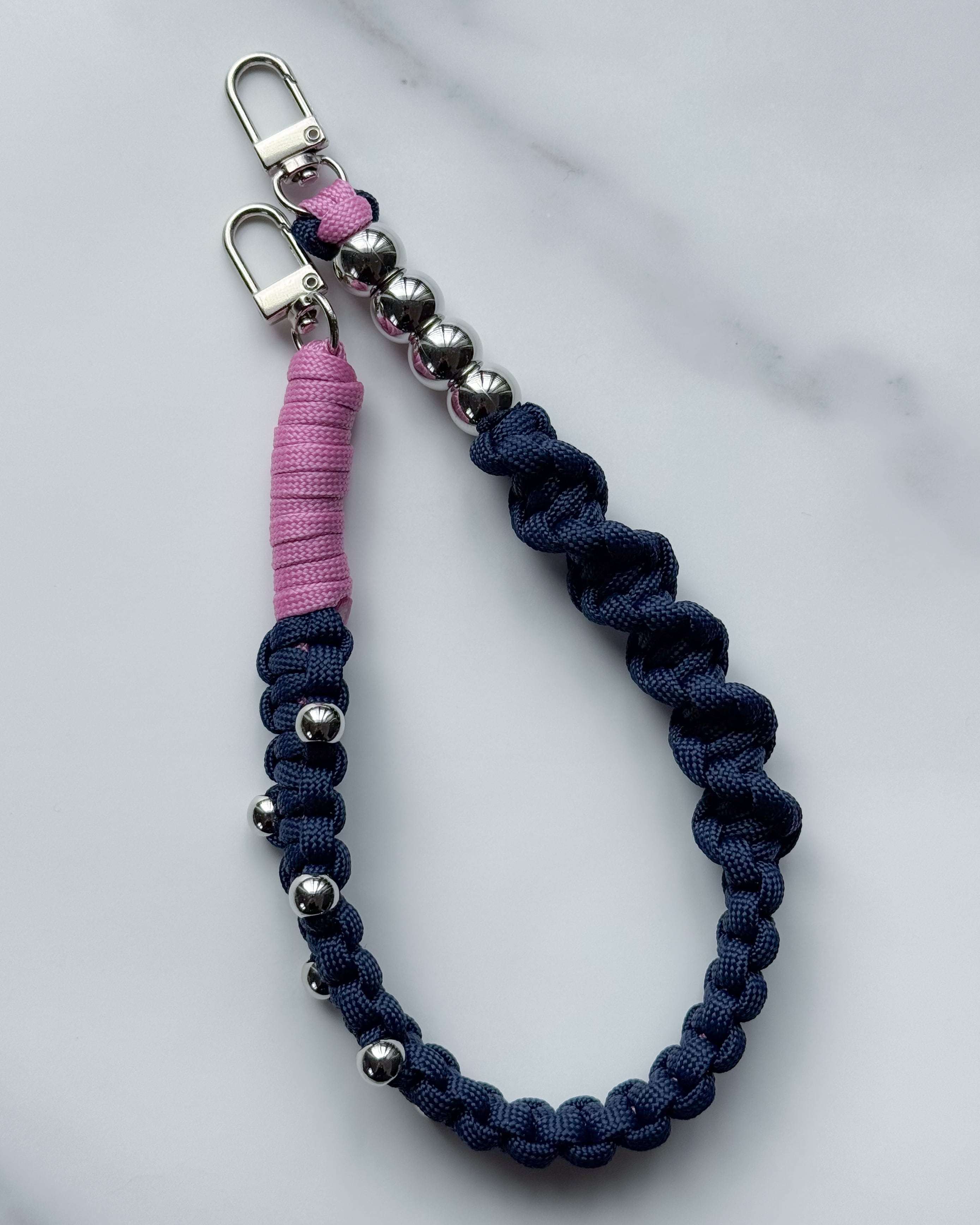 大小のシルバービーズがアクセントになり、ストラップでありながらアクセサリーのような存在感も。