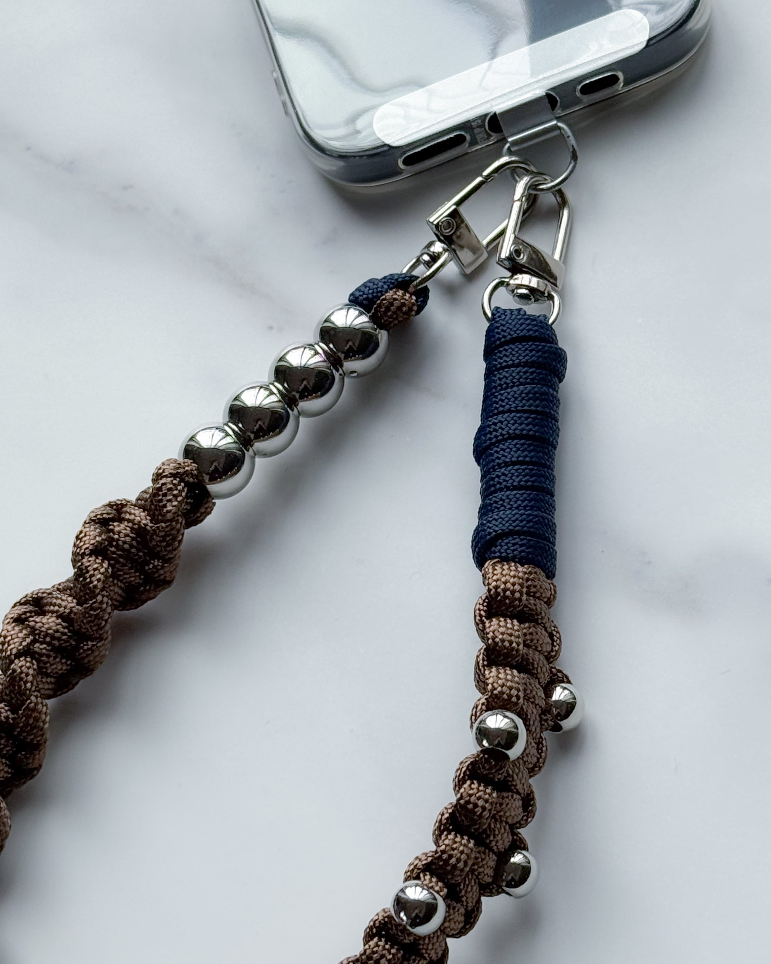 大小のシルバービーズがアクセントになり、ストラップでありながらアクセサリーのような存在感も。
