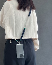 ハンドストラップにロングパーツを連結してショルダーにすると、両手が空いてぐっと身軽に。