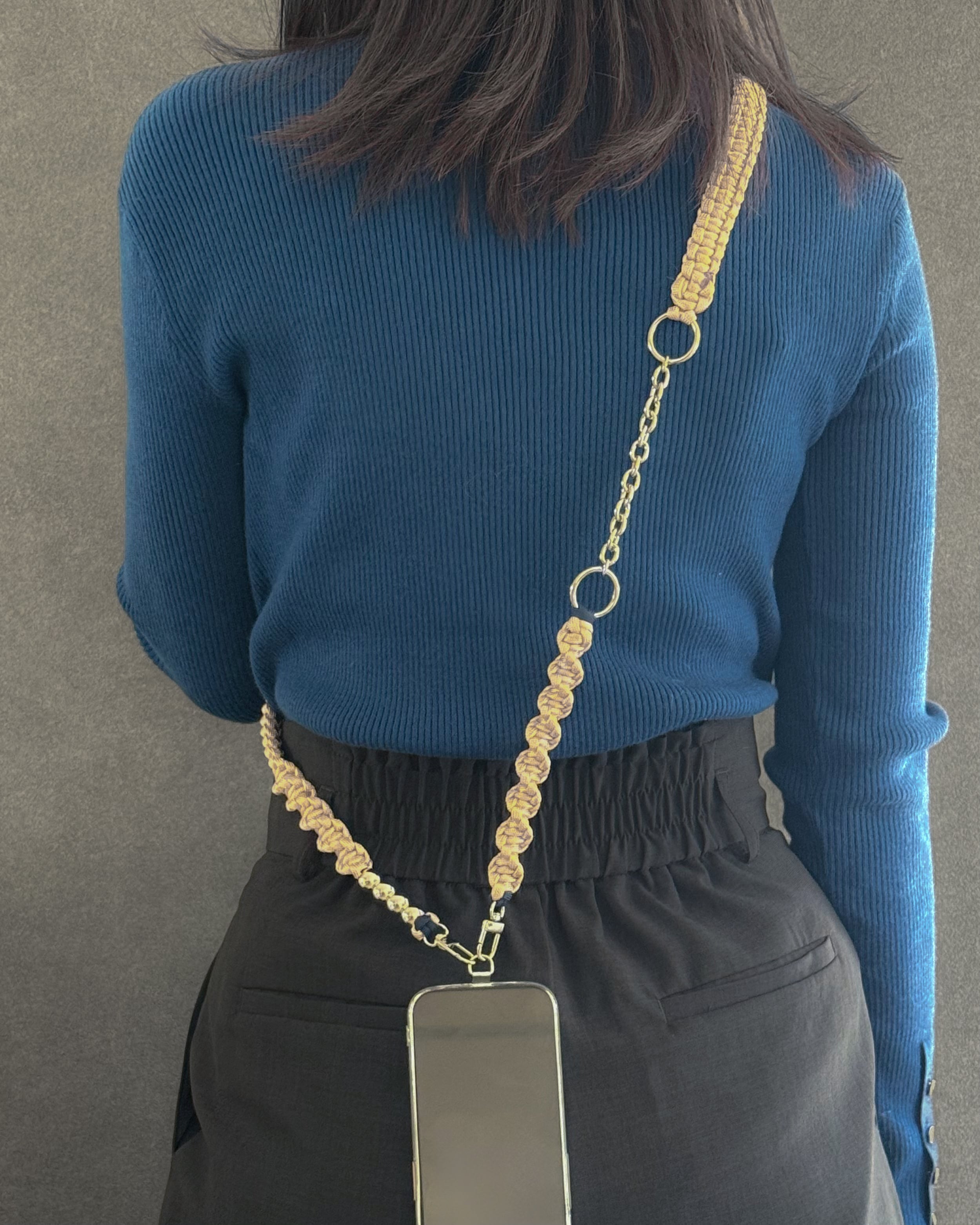 使うシーンに合わせて、無理なく形を変えられるのがこのストラップの魅力です。