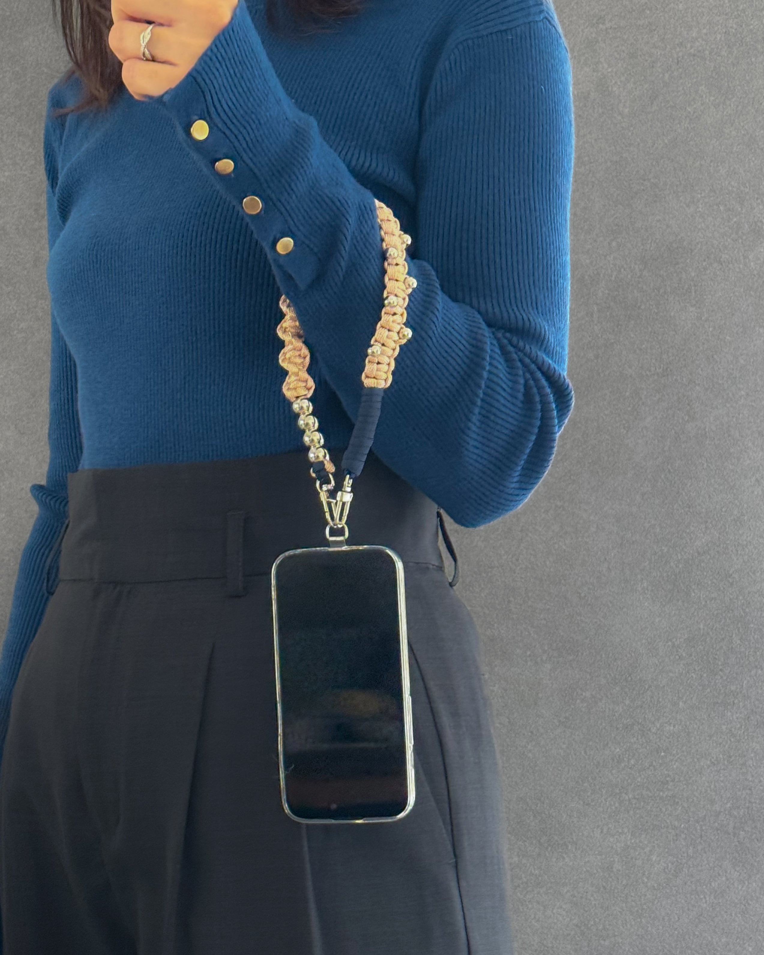 ハンドストラップとして使うときは、手首に通してさっと持てる安心感があり、スマホを落とす心配も少なくなります。
