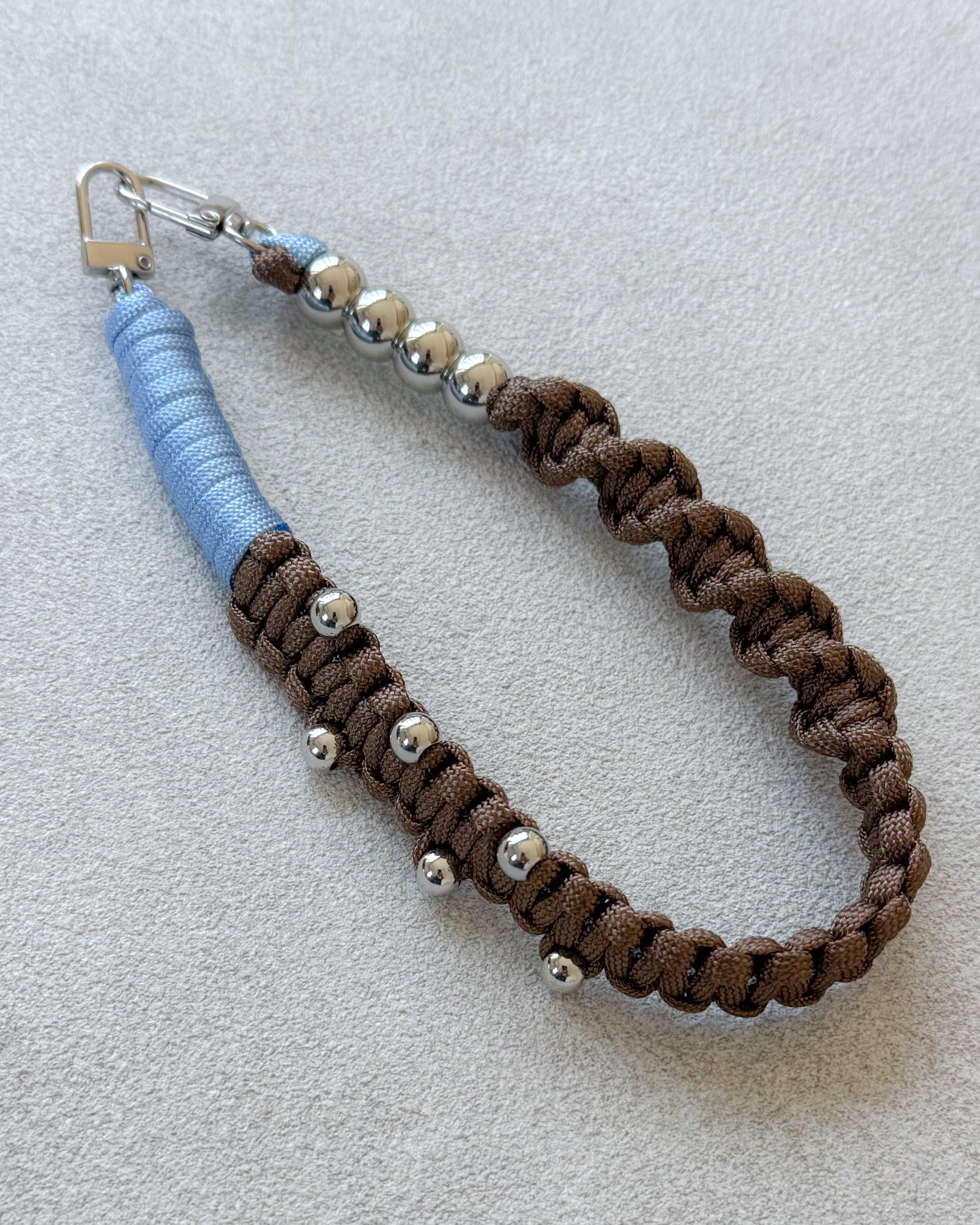 大小のシルバービーズがアクセントになり、ストラップでありながらアクセサリーのような存在感も。