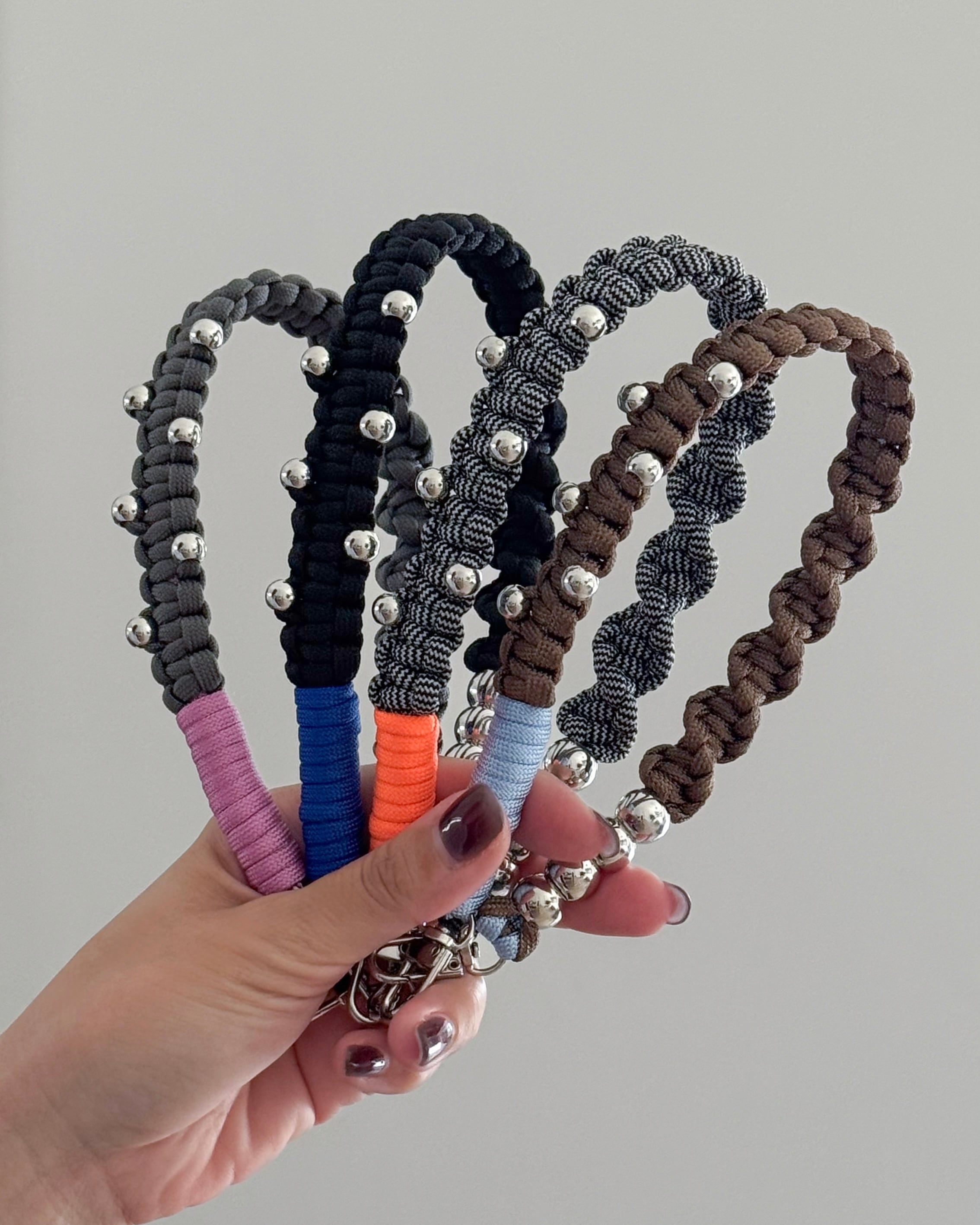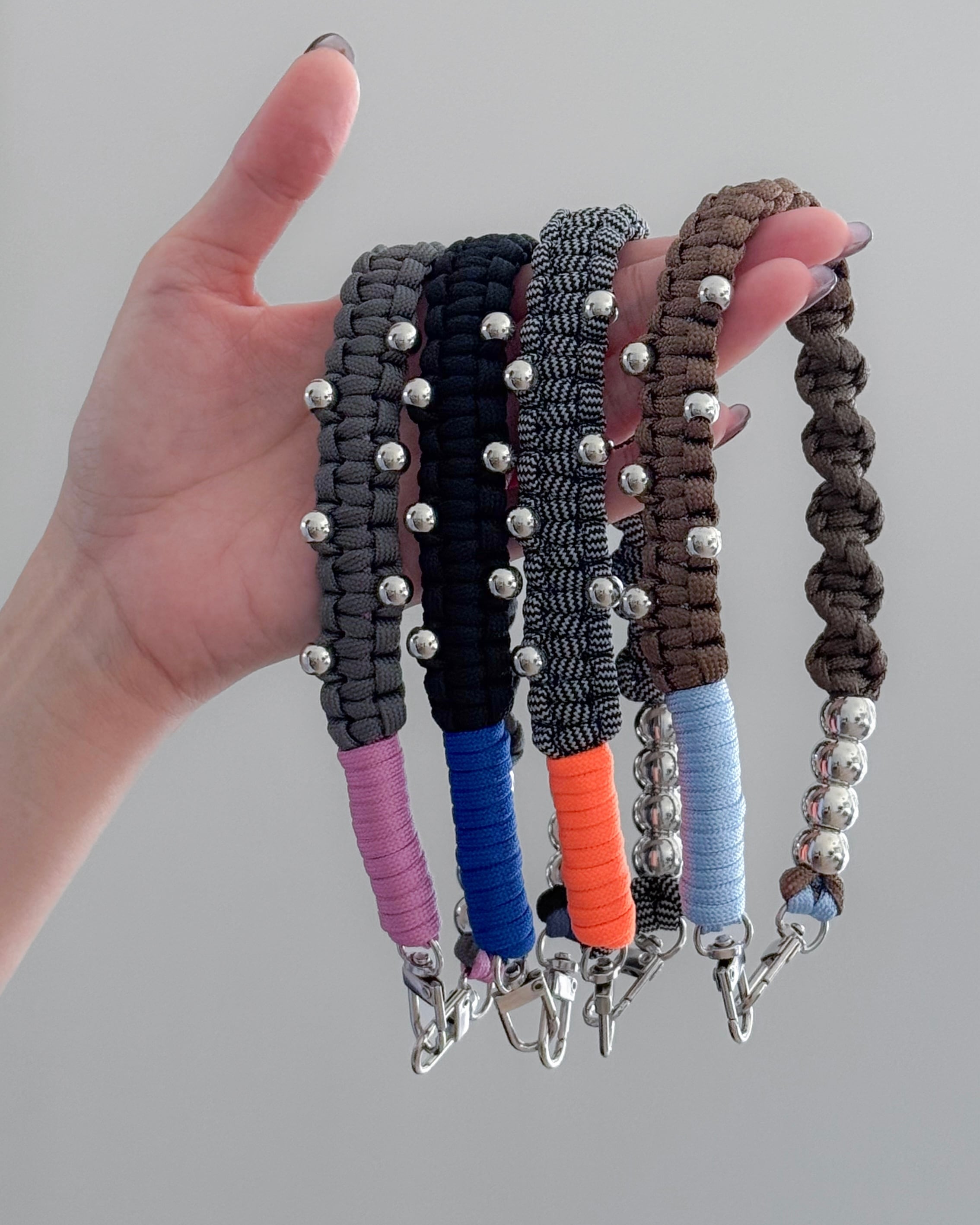 大小のシルバービーズがアクセントになり、ストラップでありながらアクセサリーのような存在感も。